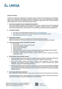 W związku ze zdarzeniami katastroficznymi, mającymi miejsce na terytorium Polski informujemy o pełnej gotowości do możliwie jak najszybszego rozpatrywania zgłaszanych do UNIQA roszczeń. Mając jednak na uwadze skalę zaistniałych zjawisk, realizacja działań w ramach prowadzonych postępowań likwidacyjnych może się wydłużać.